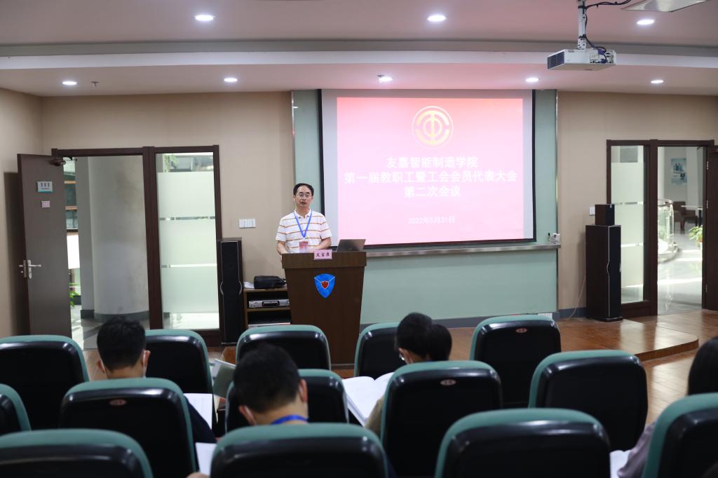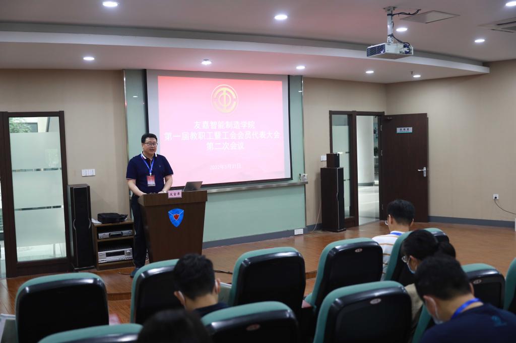 5月31日,友嘉智能制造学院第一届教职工暨工会会员代表大会第二次会议在友嘉简报室召开。会议由分院副院长韩天龙主持,出席会议的有19名正式代表、4名列席代表。大会审议了《院长工作报告》、《分工会工作报告》、《友嘉智能制造学院教师工作业绩计算办法补充条款》。