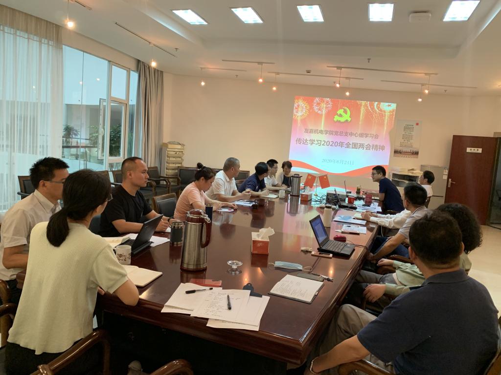 6月24日上午,友嘉机电学院党总支召开理论学习中心组(扩大)会议,专题传达学习2020年全国两会精神。党总支副书记周佳良主持会议, 中心组成员、分院中层领导干部、党支部书记等17人参加会议。