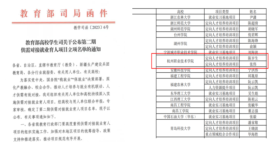 近日,教育部高校学生司发布《关于公布第二期供需对接就业育人项目立项名单的通知》(教学司函〔2023〕6号),友嘉智能制造学院陈岁生老师和张伟老师的2个项目成功获批立项。
