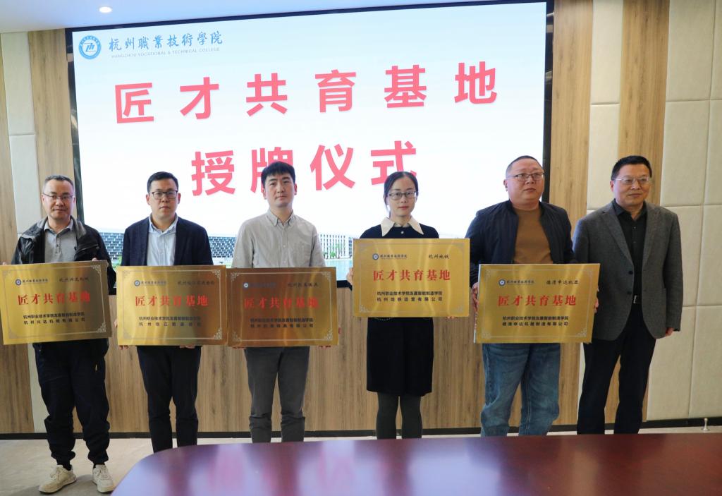 党委副书记陈泉淼为“匠才共育基地”企业授牌。他表示,学校的发展离不开行业企业的鼎力相助,希望校企实现共赢,加强交流联系;校企深化合作,搭建合作平台。围绕人才培养、党建共建、技术研发、服务社会等方面,共建校企共同体赋能高质量发展。