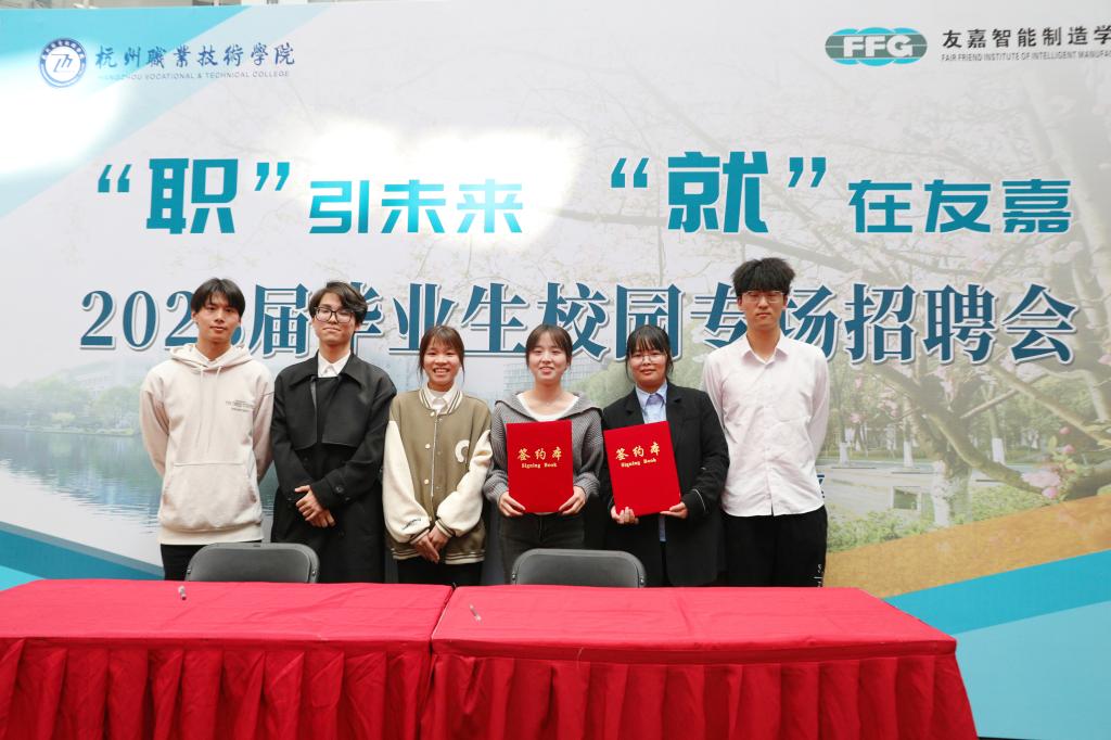 校企共同见证开展毕业生集体就业签约仪式。2023届毕业生来自电气专业王文正、数控专业翁小强等41人毕业生,分别与美高电气、杭州临江前进齿轮、杭州地铁等10余家企业完成就业签约,促进毕业生高质量体面就业,访企拓岗取得实效。