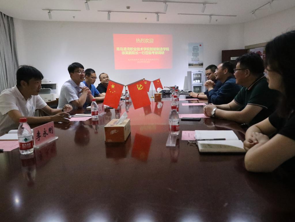 5月26日上午,青岛港湾职业技术学院智能制造学院院长徐英鹏一行五人来访友嘉智能制造学院。院长裘旭东、副院长韩天龙、教科办主任张瑞、学工办主任魏笑筠等在圆盘三楼会议室热情接待了来访人员。