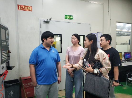 会后,来丽方部长带领来访教师看望了正在现场工程师岗位工作的学生。学生们经过四个月的培养与锻炼,已经熟悉了岗位要求及工作流程,能够独立承担部分工作任务,展现出了昂扬的工作热情与精神风貌。