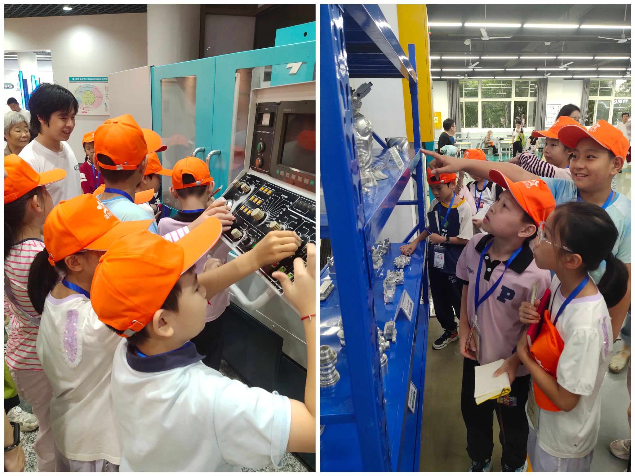 最让小记者们惊喜的是 “机床与生活馆”。讲解员结合饮料瓶模具、汽车发动机缸体、人工关节、手机外壳等实物,搭配加工视频,告诉大家在日常饮食、出行、通讯、医疗等领域的用品,背后都有机床的 “功劳”。让小记者们了解到机床与我们的生活密切相关。