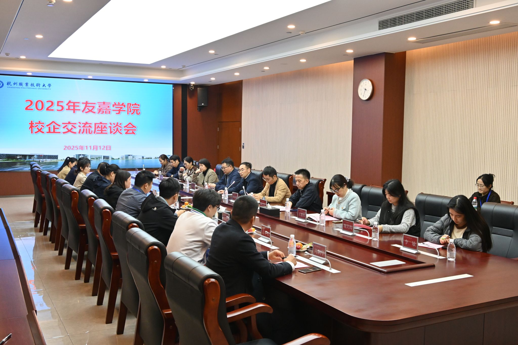 为深化校企合作,精准对接企业人才需求,2025年11月12日下午,友嘉智能制造学院在行政楼129会议室成功举办了校企交流座谈会。学院院长裘旭东、党总支副书记顾林刚、副院长韩天龙、各专业负责人、学工办主任及就业辅导员,与来自友嘉国际数控机床有限公司、宁德时代新能源科技股份有限公司等十家知名企业人事代表共聚一堂,围绕人才共育展开深入交流。会议由顾林刚主持。