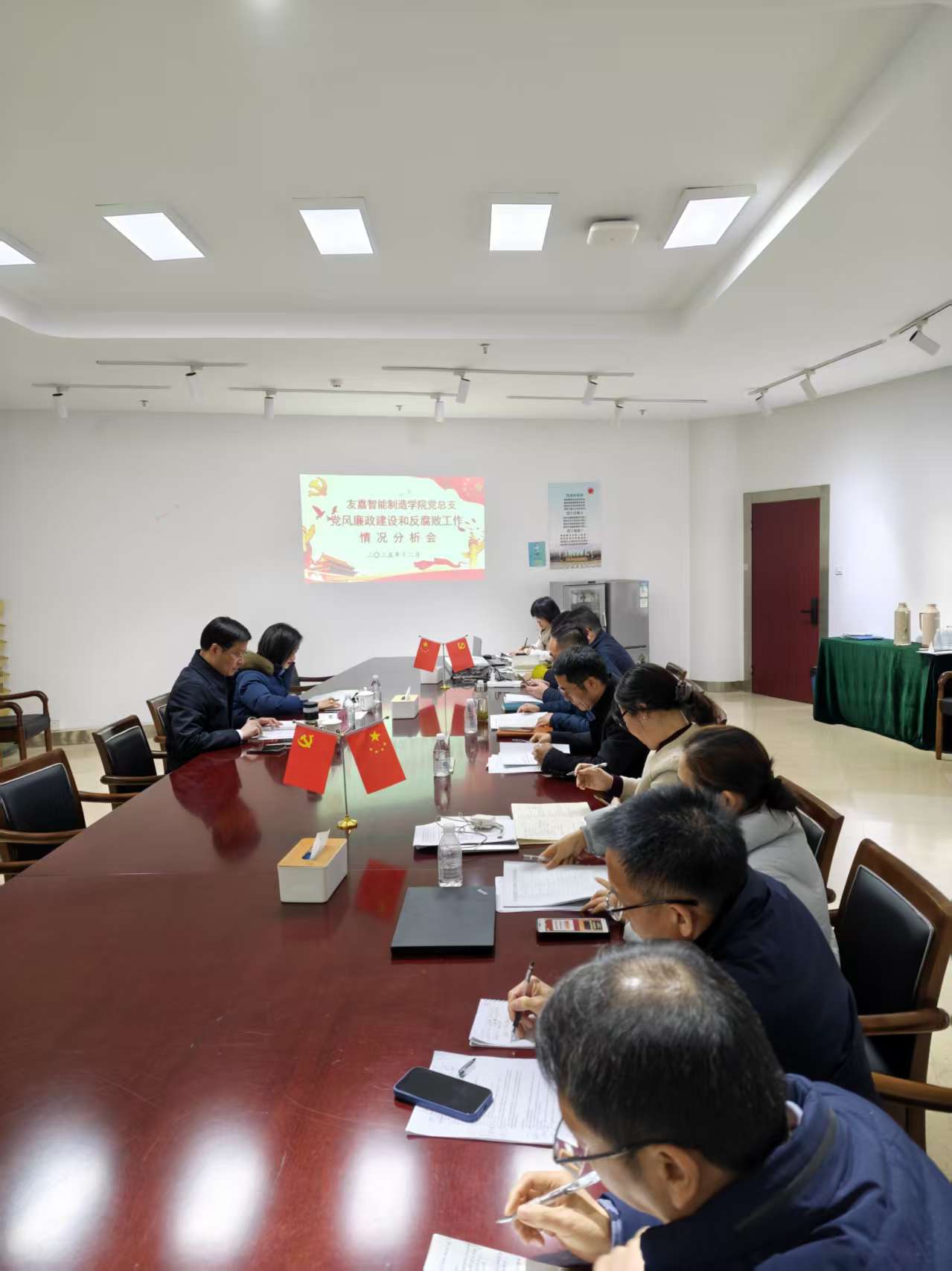 12月17日下午,友嘉智能制造学院党总支在友嘉E310召开2025年下半年党风廉政建设和反腐败工作情况分析会。校党委副书记赖明诚,校纪委委员何霞红到会指导,学院班子成员、支部书记、三办主任、组织员和特约监督员参加会议。会议由友嘉智能制造学院院长兼党总支副书记院长裘旭东主持。