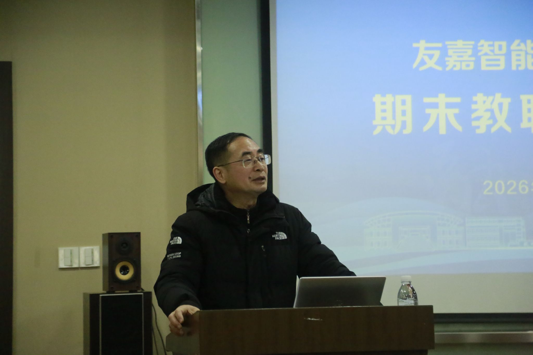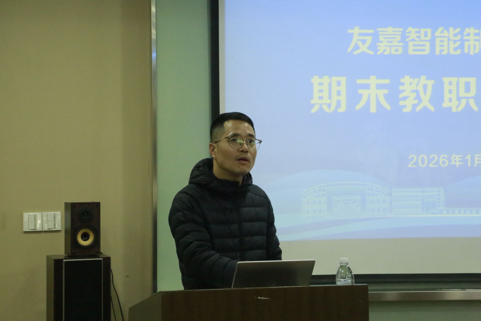 1月21日上午,友嘉智能制造学院在E204简报室召开期末教职工大会。院长裘旭东、党总支副书记顾林刚、副院长韩天龙,以及全体教职工参加会议。会议由顾林刚主持。