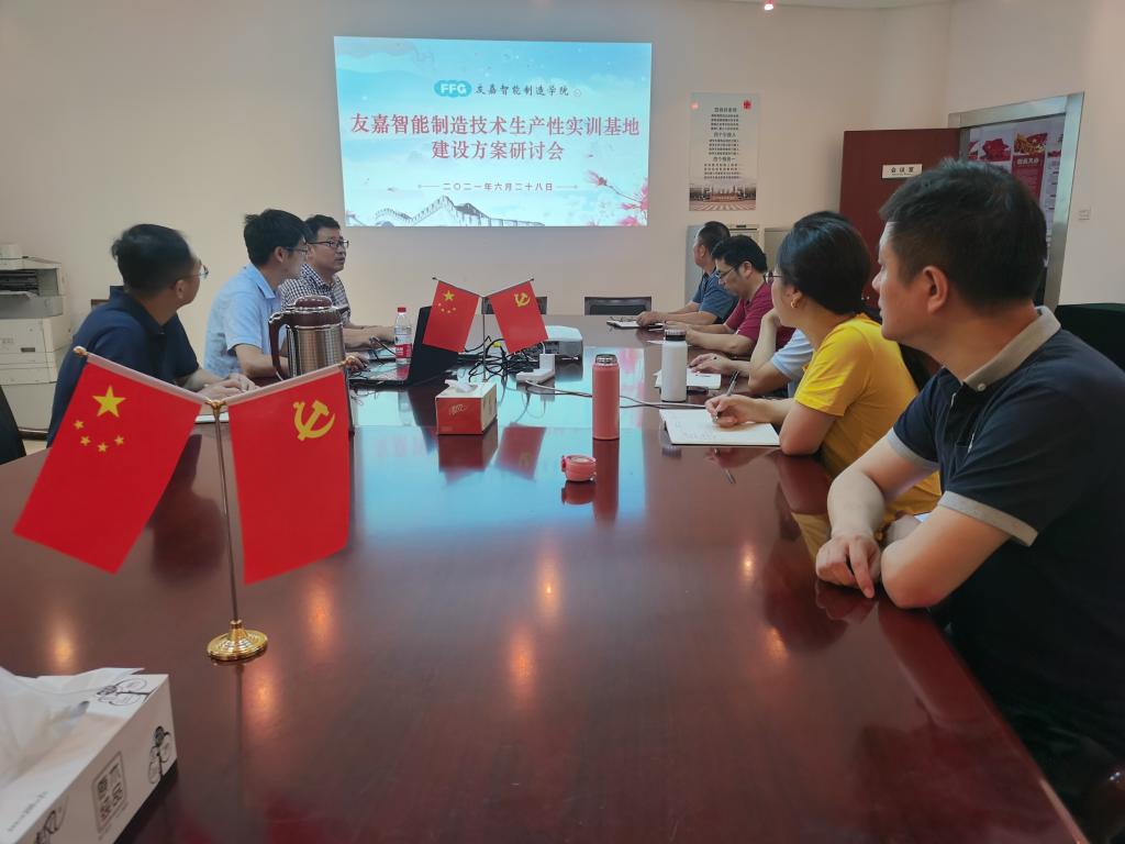 6月28日上午,友嘉智能制造学院在友嘉308会议室召开智能制造技术生产性基地建设方案研讨会。会议特别邀请了苏州博达特机电科技有限公司卢云良高级工程师进行指导,友嘉智能制造学院院长裘旭东、书记付文军、副院长韩天龙、电气专业负责人陈岁生、数控专业负责人王惠姣、智控技术专业负责人张伟及教科办主任张瑞参加了研讨会,会议由韩天龙主持。