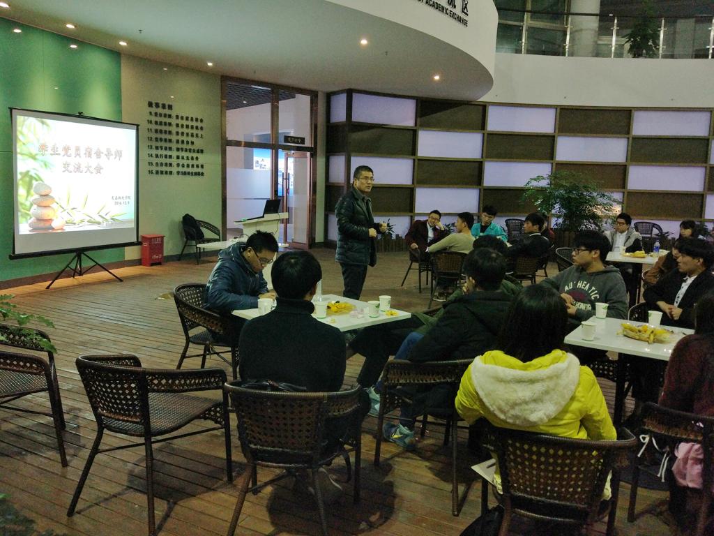本次交流会以“勿忘初心,立足本职”为主题,主要就导师工作开展情况和心得体会进行分享交流,其次是围绕“导师工作如何创新”和“先锋作用如何发挥”两个方面进行专题讨论。会议中27位学生党员(含入党积极分子)结合自身工作实际,用生动的语言和鲜活的事例,交流了自己的真情实感,引起了与会党员心灵上的共鸣。如吴佳俊讲述用真爱去关心新同学,了解结对寝室每位成员的性格,和他们做朋友,营造融洽的朋友学长关系,不断充实和完善自身的具体做法,展现了一个学生党员导师在平凡的工作岗位上如何发挥先锋模范作用。项宝蕾以“用心倾听——‘学生党员导师’工作心得”为题,用一个典型的案例诠释了学生党员结对帮扶新生宿舍导师工作的重要性和自己的真切感受,并对进一步做好工作提出了建议。