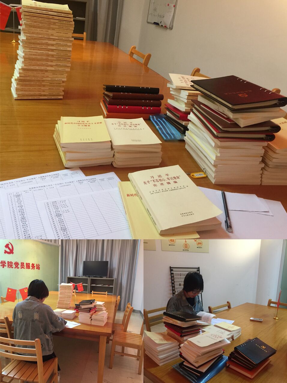 为扎实推进“不忘初心、牢记使命”主题教育,检验党员理论学习成效,10月16日友嘉机电学院党总支要求以支部为单位上交《习近平关于“不忘初心、牢记使命”论述摘编》《习近平新时代中国特色社会主义思想学习纲要》《中国共产党章程》。认真查看全体师生党员干部“两书一章”学习情况,是全部读完、部分读完还是均未读,学习资料有无层层加码等,根据所学所思所悟,有无在规定学习书目上划重点、做标注,并做好《学习教育抽查情况统计表》登记。
