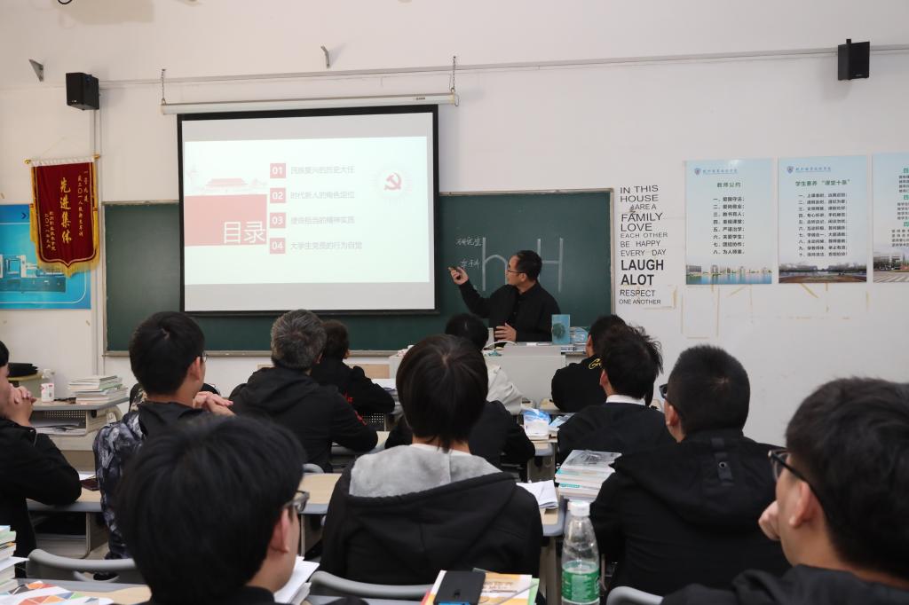 为进一步加强学生思想教育,全面提高学生培养质量,根据《杭州职业技术学院领导干部深入基层联系学生工作实施方案》,11月8日下午,友嘉机电学院院长走进3305教室,以“新时代大学生的使命和担当”为题,给机设1811班学生讲授了习近平总书记对大学生的寄望、新时代大学生的历史使命以及责任担当的思政课。