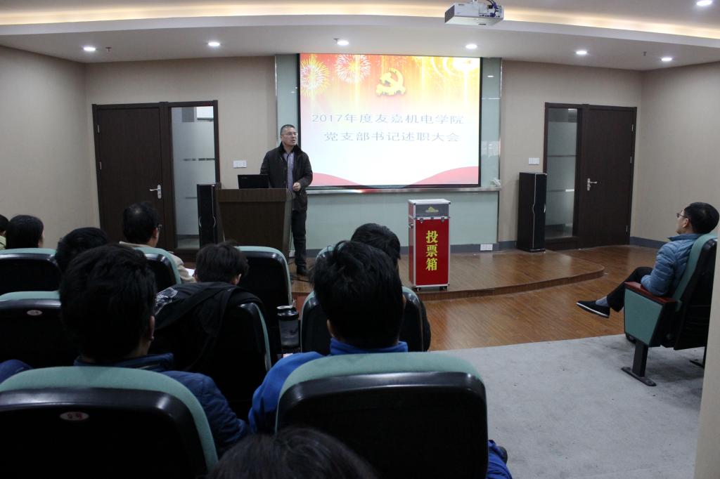 12月27日,友嘉机电学院党总支召开支部书记党建工作述职评议会。全体教师党员、学生党员55名同志参加对党支部书记述职情况的测评。学院组织员傅淑燕主持会议。