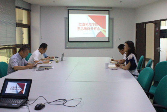 6月21日下午,友嘉机电学院召开党风廉政专题分析会,回顾总结半年来党总支抓党风廉政建设工作的情况、查找存在的薄弱环节和风险点,进一步厘清下半年党风廉政建设的工作思路和举措,会议由学院党总支副书记周佳良主持。
