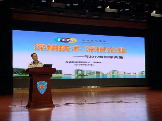 首先,裘旭东院长为新生们带来《深耕技术 扎根企业》的演讲,娓娓而谈、振奋人心。站在学院角度,从学院实际出发,讲述了学院的过去、现在和未来,描绘了学院发展的美好蓝图。演讲最后,裘院提出了三点期望:无工不强,积极投身中国制造;学习制造技术,成就精彩人生;深根大企业,坚持总有机会。