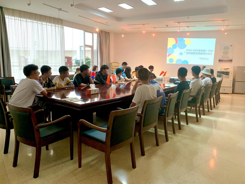 为落实学校关于疫情防控工作的有关部署,全力保障老生返校志愿服务工作有序开展,9月8日下午,友嘉智能制造学院返校防疫志愿者岗前培训会在圆盘308会议室举行,21名志愿者参与培训。
