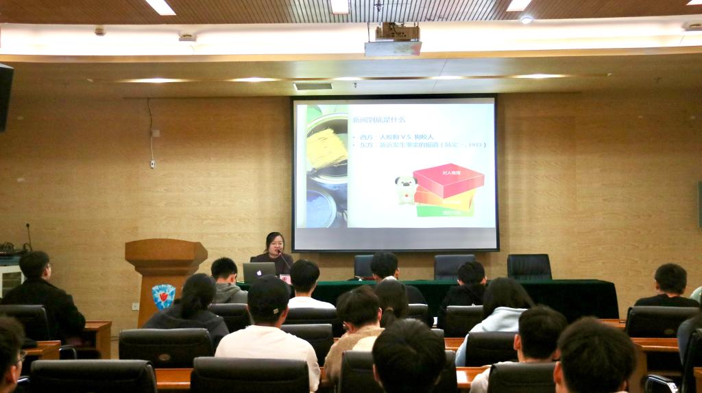 在讲座中周曦老师主要向我们介绍了新闻的五要素、撰写过程所要注意的小细节及新闻的价值结构。“纸上得来终觉浅,绝知此事要躬行”为了让干部与干事们可以对新闻写作方法有更加深入地了解,周曦老师结合学院官网的具体通讯稿就其中存在地问题进行了详细分析和改正,同时还将新闻周刊的一些优秀新闻稿进行展示并给予一些小建议。例如“倒金字塔”结构、“增加描写、挖掘细节、使用对话”等一些小技巧。她强调“新闻的基本特点之一是时效性,校园新闻也是如此,所以应多注意细节及时交稿。”
