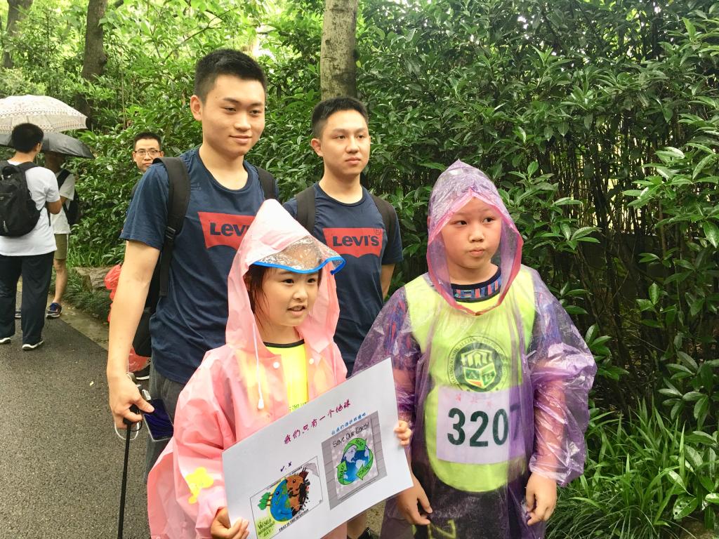 通过前期的策划和动员,5月19日早晨同学们自行在学校门口集合,共同绿色出行,乘坐公共交通抵达九溪风景区。虽然天气下着雨,但是同学们的内心依旧热情洋溢,毅行途中偶遇了嘉兴市南湖世合(双语学校)第一小学的小朋友们“带着任务”前来九溪开展课外实践活动,他们向来此处的游客们一一宣传要保护环境,做到不乱丢垃圾,垃圾要分类处理。同学们纷纷在小朋友的承诺书上签下了自己的名字。最后,在俞旭老师的提前准备下,组织同学们进行了一些趣味竞赛游戏,以小组形式比拼,既让同学们收获了乐趣,又让大家明白了团队合作的重要性。