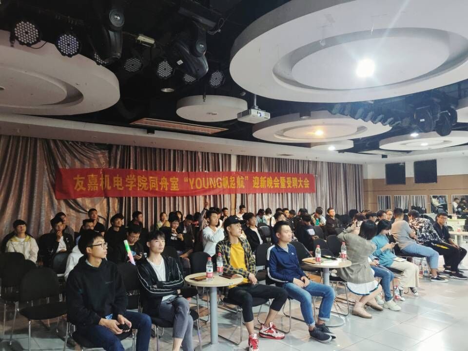金秋十月,丹桂满枝头。同舟室迎来了一群新干事,为了迎接他们的到来,也为了感谢2017级老部长们的辛勤付出,10月24日傍晚六点在学生活动中心108举办了友嘉机电学院同舟室“YOUNG帆起航”迎新晚会暨受聘大会。出席本次活动的有社团指导老师俞旭、同舟室2017级、2018级的社长、部长们以及全体同舟室干事们。