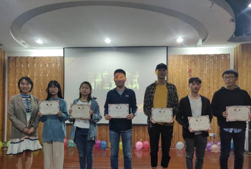 在新干事授牌仪式上,各个部门的新干事在两位部长的带领下依次上台,由部长为他们带上干事牌。小小的一张牌子,承担的是干事们肩负的责任,更是老师和部长们对他们的期望。