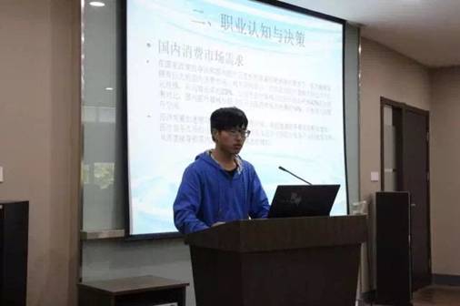 在决赛现场,选手们一一上台,通过PPT展示的方式,将自己的职业规划——就业(含升学)类或创业类规划娓娓道来。每个人都恰当运用了职业测评等分析、决策工具以及课外查询到的行业资料、数据、图表等等内容,对自身的职业规划过程进行了详尽的阐述。