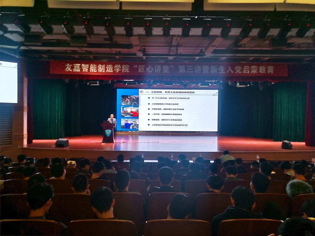 为进一步做好20级新生入学教育工作,弘扬劳模精神和工匠精神,同时让20级同学更加地了解大学生在校公寓管理规定,10月29日晚,友嘉智能制造学院“匠心讲堂”第三讲在图书馆报告厅开讲,主讲人为付文军老师和辅导员李海波老师,此次讲堂通过线上线下相结合的方式,让未来到现场的新生也可以通过手机观看直播。