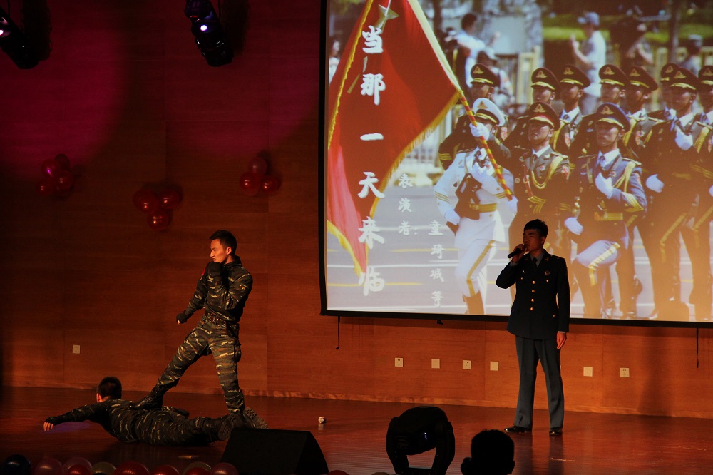 踏着颁奖的余韵,由三位退伍的男生表演的《当那一天来临》,向大家展示了军人的飒爽英姿和英勇无畏的精神。集体舞《SHAKE IT》活泼而富有节奏感,将青春阳光这一主题展现得淋漓尽致。继而一支集体舞《barbar bar》,踏着动感的舞步,活力四射,带大家一起放飞身心,展现别样的风采。