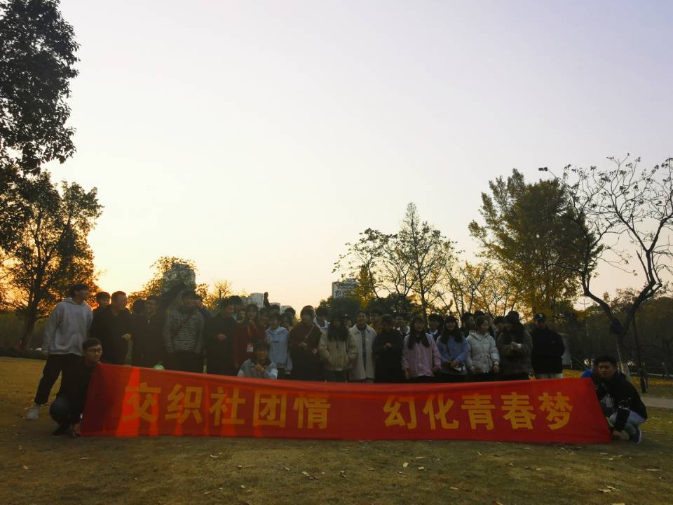 游戏正式开始后,大家分头寻找事先藏好的任务卡片。然后寻找任务点与其他队伍进行PK做游戏,赢的队伍获得相应的红丝带,最终红丝带数量最多的队伍为获胜者。比赛项目十分丰富且有意思,“坐地拔河”要求参赛者须坐在地上进行拔河,有趣的体验让大家捧腹大笑。“五人六足赛跑”,参赛者用绳索对五人两两间相邻的脚捆在一起,然后五人相互配合冲过终点,这极大的训练了小组间的默契与合作能力。“正话反说”“绕口令”“干瞪眼”“定点拍照”、“跳大绳”活动,和谐欢乐的场面吸引了很多周围来公园游玩的人的目光,夕阳照射在每个人的笑脸上,浓郁的联谊情结在我们之间传递,青春在我们之间洋溢。
