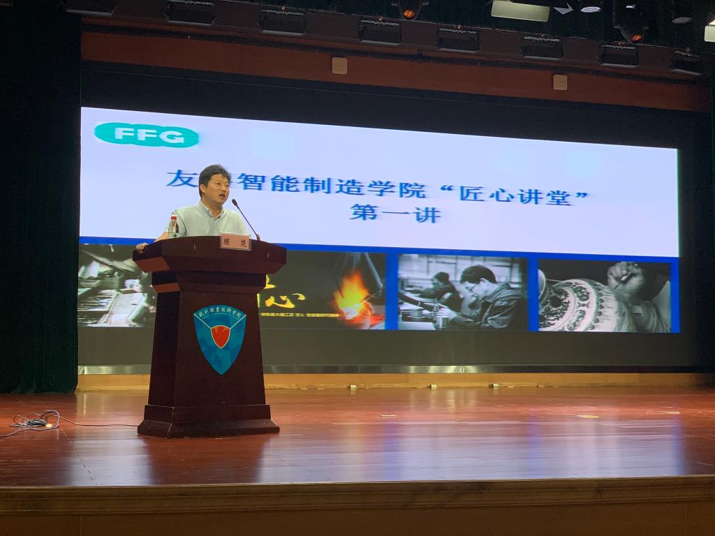 9月25日下午,值此第二个“全国工匠日”来临之际,友嘉智能制造学院“匠心讲堂”在图书馆报告厅开讲了。杭州市高层次C类人才,浙江省首席技师、浙江省五一劳动奖章、浙江省青年岗位能手陈楚老师为同学们带来了别开生面的第一讲。