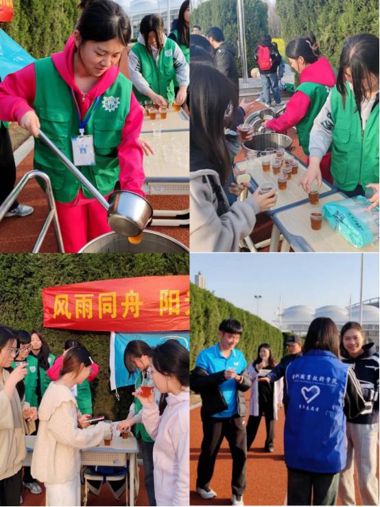 “同学,来,尝尝这杯红糖姜茶,暖胃又暖心!”“跑完步来这边,我们帮你放松肌肉,缓解疲劳。”......志愿者们如同勤劳的小蜜蜂,在训练间隙穿梭于田径场,为同学们递上热茶,送上关怀。
