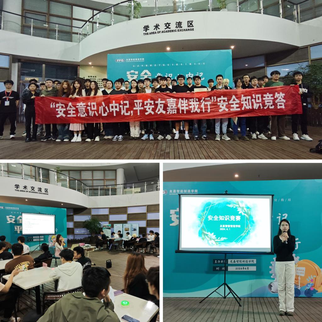 为进一步贯彻落实习近平总书记关于“生命至上,安全第一”的重要指示精神,积极倡导安全发展理念,友嘉智能制造学院于4月1日晚在圆盘学术交流区隆重举办了“安全意识心中记,平安友嘉伴我行”安全知识竞赛。此次活动旨在通过寓教于乐的形式,强化校园安全工作,提高学生们的安全防范意识和能力。