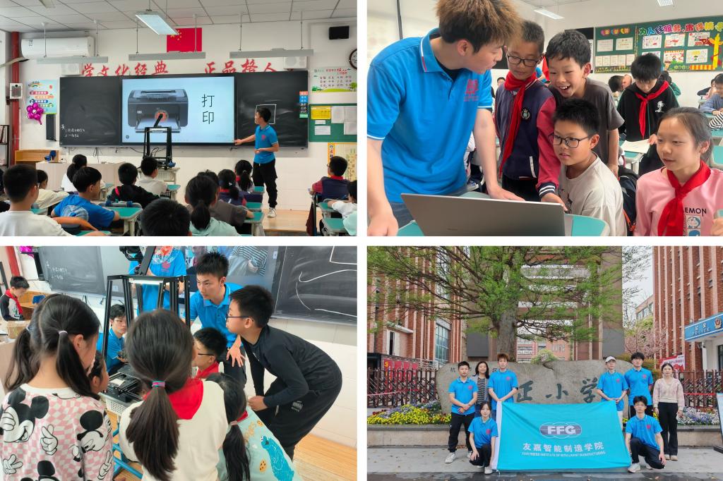 在这场魔法般的课堂中,友嘉智能制造学院的大学生们化身为魔法导师,带领学正小学的孩子们走进了一个充满神奇与创意的3D世界。他们通过生动的讲解和有趣的互动,向孩子们展示了3D打印技术的魅力,让他们感受到了从虚拟设计到现实实物的精彩转变。