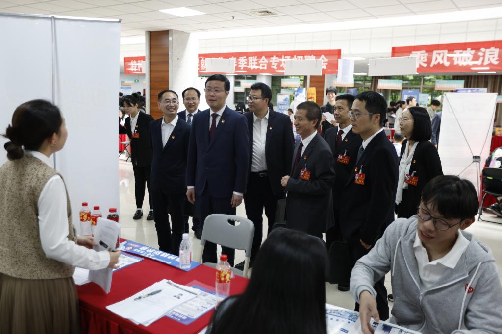 校党委副书记赖明诚、友嘉智能制造学院党总支书记付文军、院长裘旭东、副院长韩天龙一行莅临招聘会现场,与各大用人单位和毕业生交流互动,倾听用人单位人才需求以及对学校人才培养的建议,详细了解用人单位招聘进展、毕业生现场就业签约情况。院领导班子鼓励毕业生们要树立正确就业观念,把握珍贵招聘机会,积极投身就业大潮。