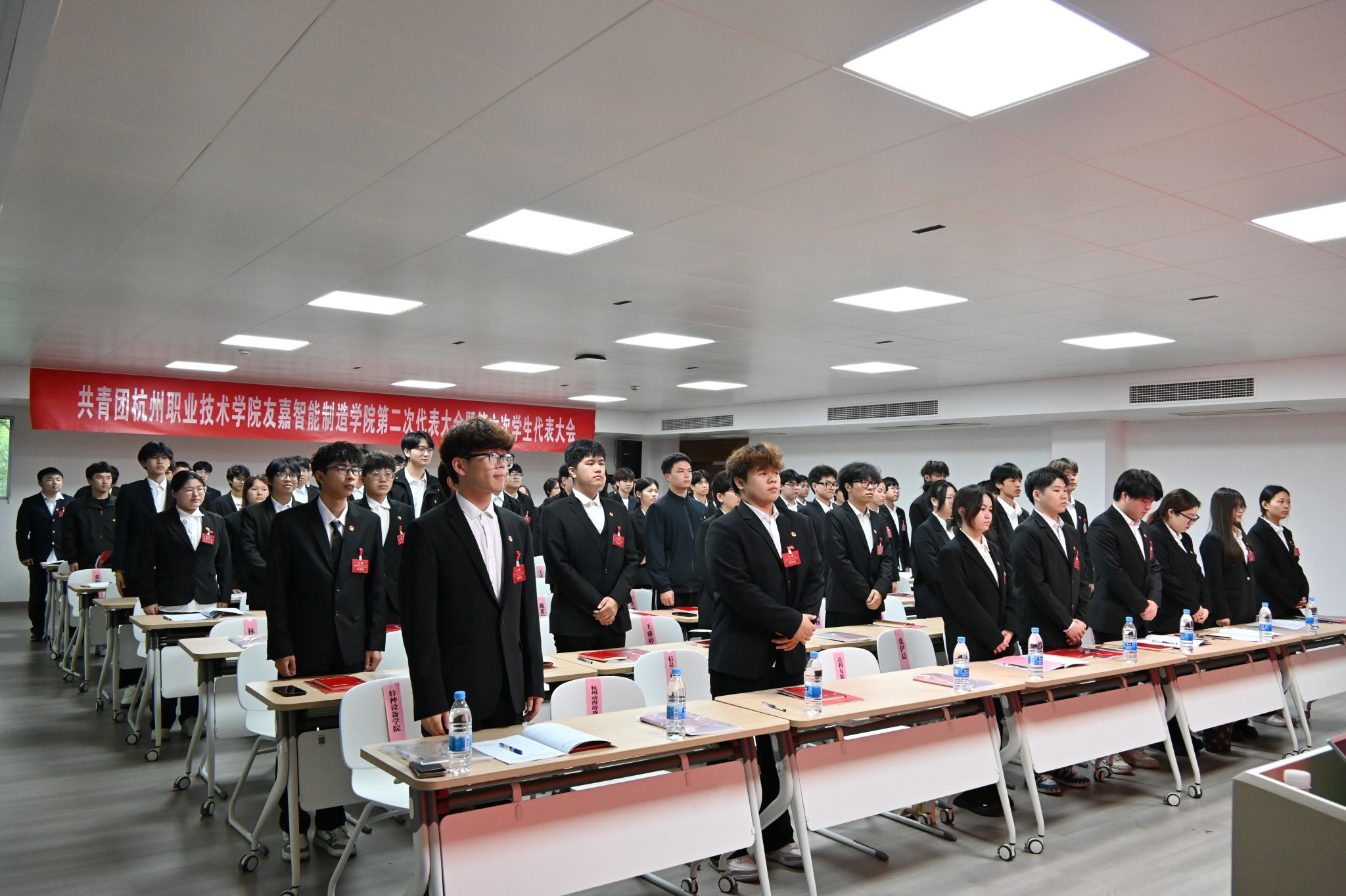 最后,全体代表起立奏唱《光荣啊,中国共青团》,至此,共青团杭州职业技术学院友嘉智能制造学院第二次代表大会暨第六次学生代表大会圆满闭幕。