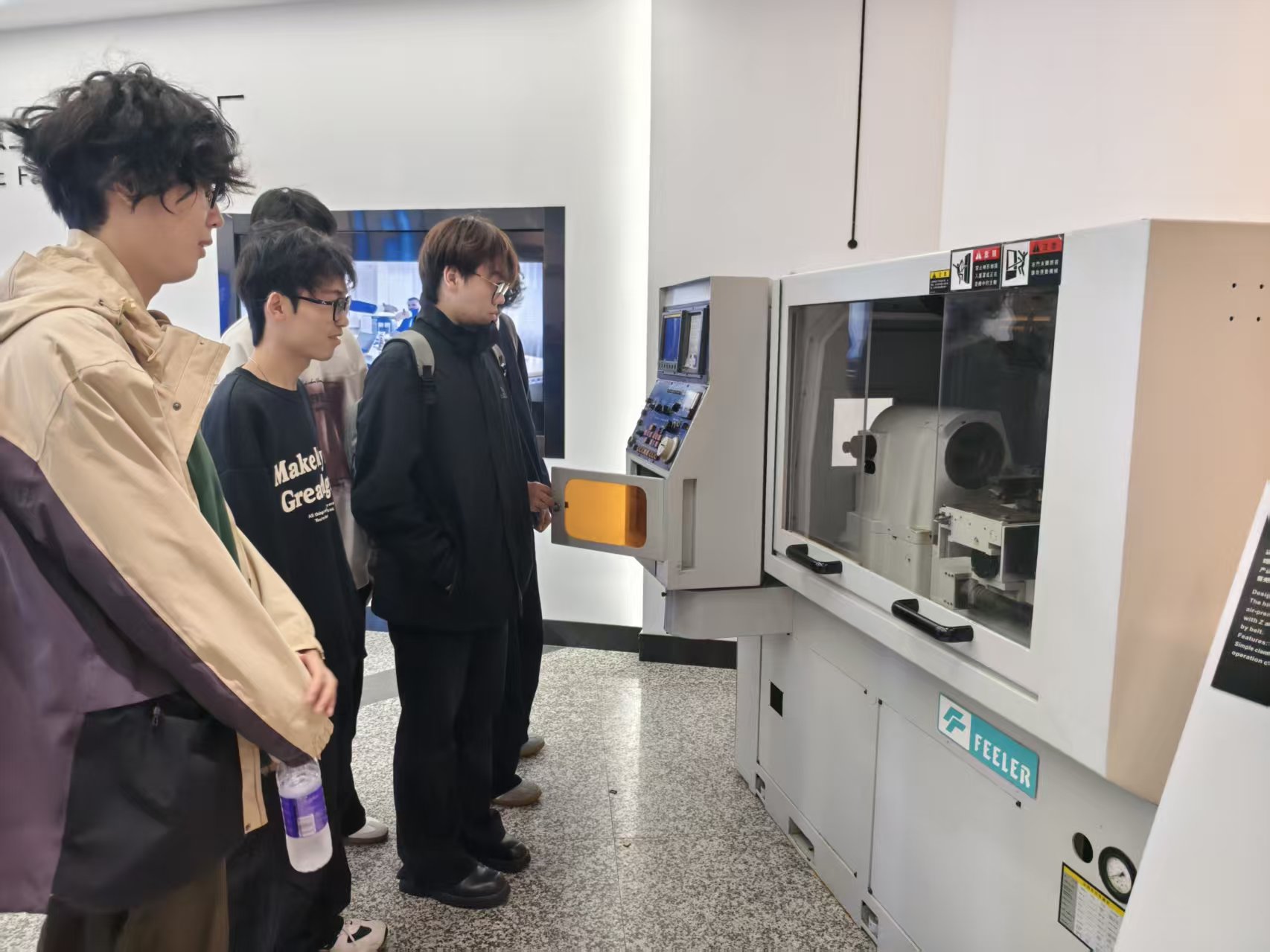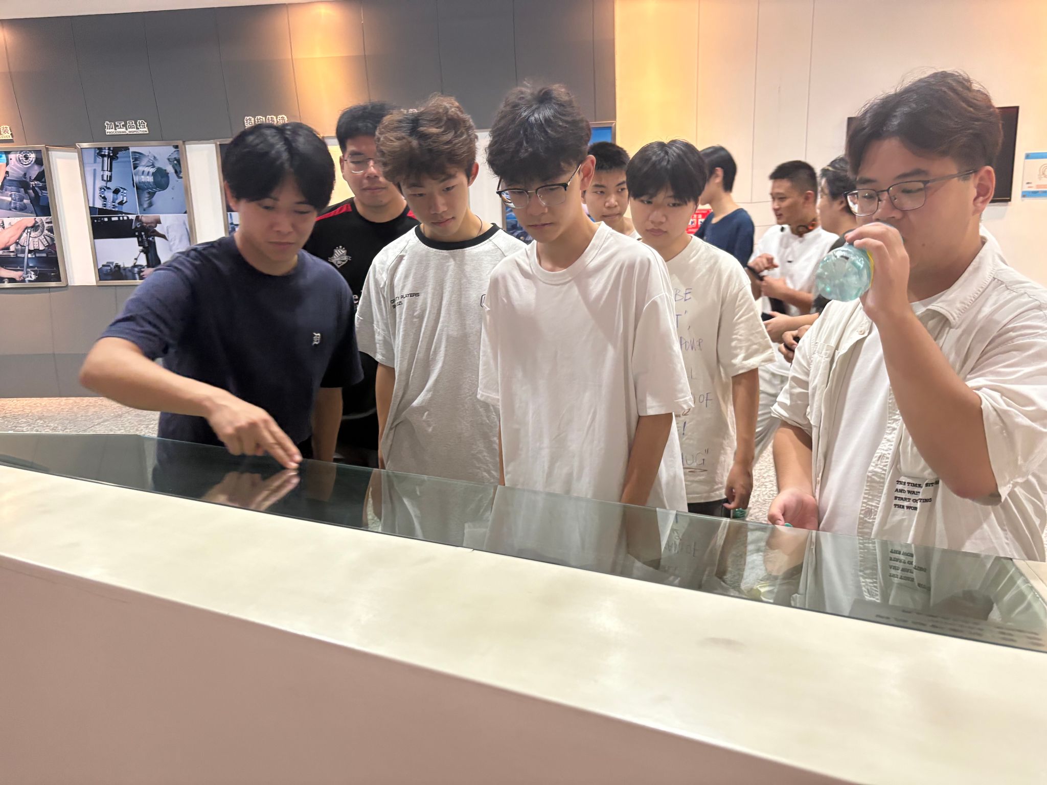 在博物馆六大主题展区中,同学们系统了解了从传统制造到智能制造的演进历程。从1985年友嘉首代数控机床的实物展示,到现代五轴加工技术的应用实例;从机床核心部件的精密工艺,到未来智能工厂的发展趋势——丰富的展陈内容与专业的现场讲解,为新生搭建起连接理论知识与产业实践的桥梁,使大家对《机床基础》《数控编程》等后续课程建立了直观认知。