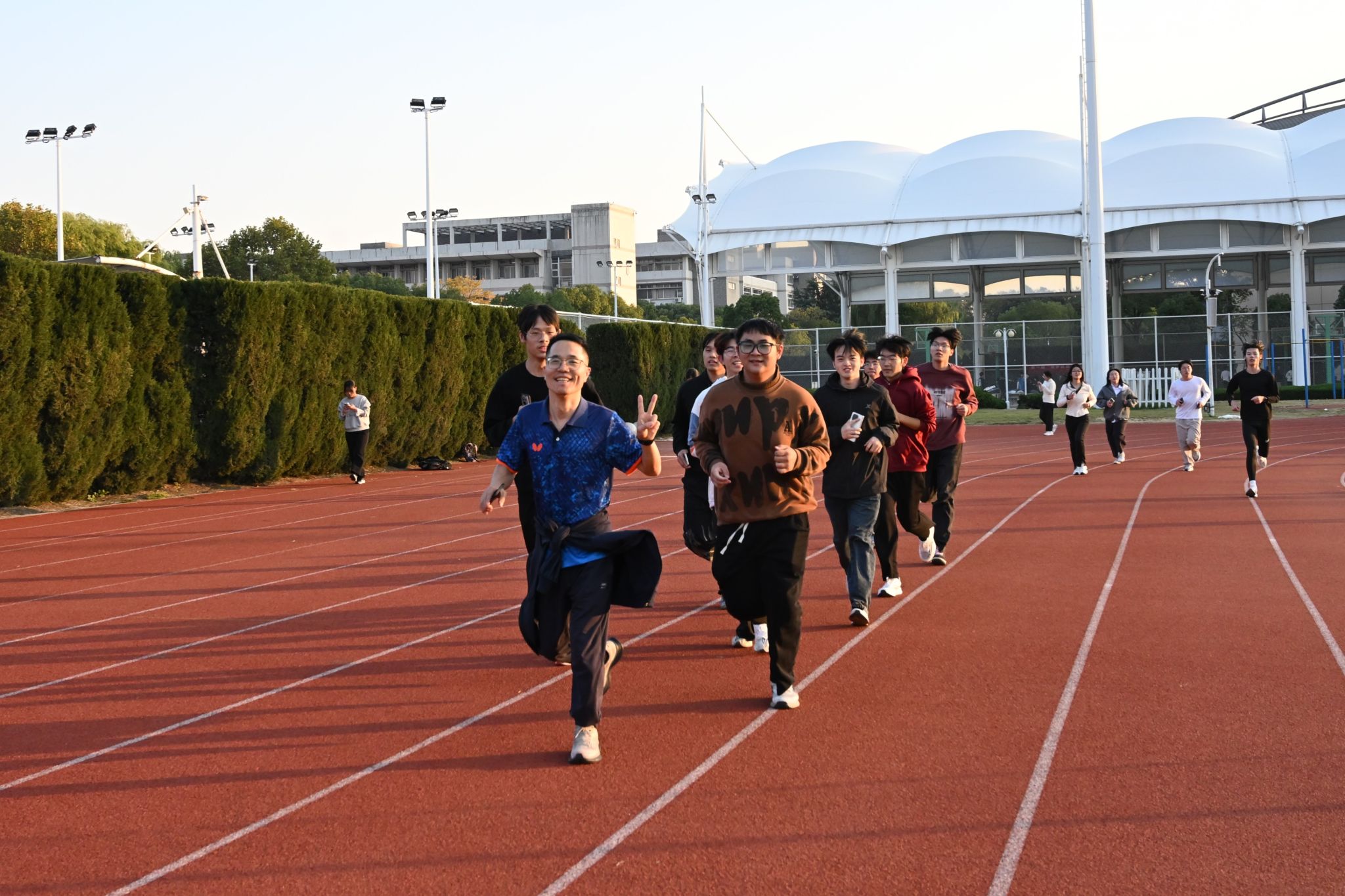 热身环节结束后,顾林刚致辞,他以风趣的语言鼓励同学们:“学习累了,就跑跑步,赶走depression和emo!”亲切而贴近学生的话语,赢得了全场阵阵掌声与笑声。不少同学表示,能够与副书记、辅导员一同奔跑,既感新鲜又倍感温暖,对接下来21天的乐跑之旅充满期待。