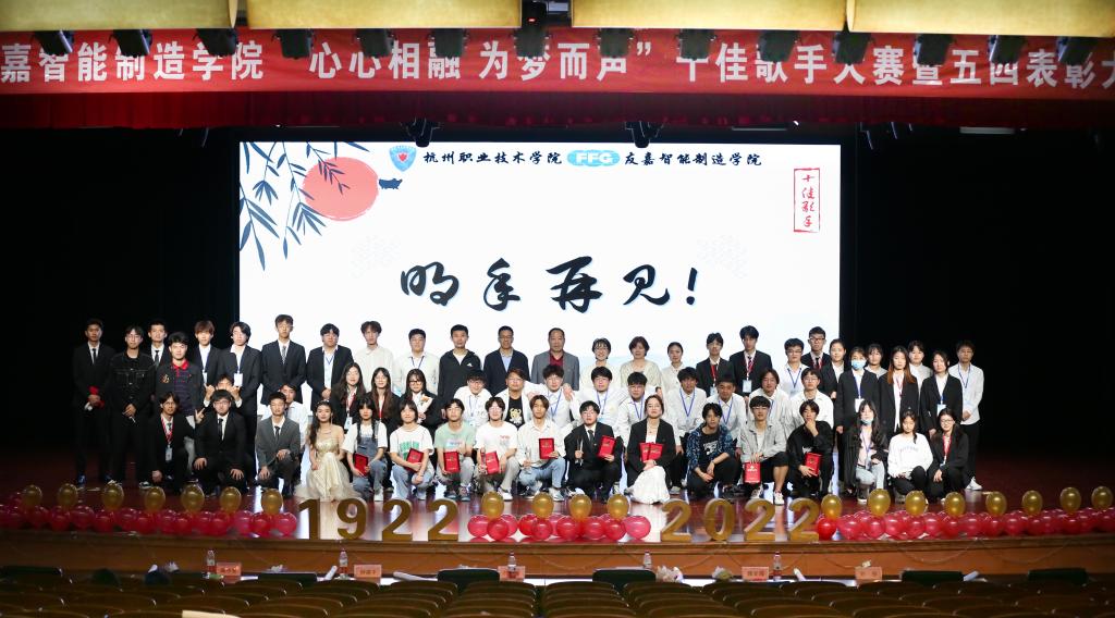 “五月的号角已被吹响,青春的歌声永不缺席。”为庆祝中国共青团成立100周年,迎接党的二十大胜利召开,大力弘扬五四精神,展示蓬勃向上的青春力量,增强永远跟党走的理想信念,5月4日晚上,友嘉智能制造学院“心心相融 为梦而声”十佳歌手大赛暨五四表彰盛典在图书馆报告厅隆重举行。友嘉智能制造学院党总支书记付文军、学工办主任钟建平、团总支副书记俞旭以及各年级辅导员参加。本次活动通过十佳歌手比赛、五四先进表彰、新团员入团仪式三个环节展开。