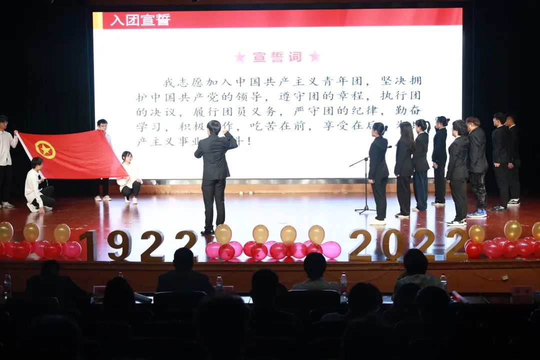 青年是标志时代的最灵敏的晴雨表,时代的责任赋予青年,时代的光荣属于青年。在2021年上半年新团员入团仪式开始后,党总支书记付文军与团总支副书记俞旭为新团员颁发了团徽、团员证,在鲜艳的团旗前,优秀团干部代表带领新团员高举右手,庄严宣誓,集体宣读入团誓词。新团员代表陈辉表示未来他们将以团歌为号召,以团旗为标杆,以团徽为荣耀,以实际行动展示共青团员的先进性,弘扬五四精神,让团徽闪耀,让青春起航!