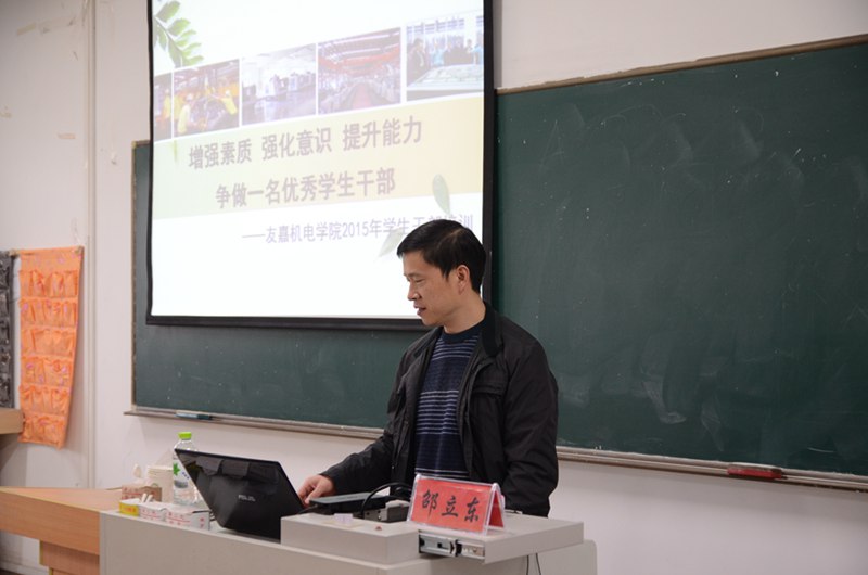 为进一步提高学生干部的综合素质和工作能力,切实加强和改进我院学生管理和服务工作,友嘉机电学院团总支、学生会分别于10月14日、11月18日、12月2日,在友嘉大楼3503举办了三期学生干部培训班。团总支、学生会全体成员参加了培训活动。院党总支书记邵立东、学工办主任傅淑燕、团总支书记钟建平分别根据自身工作经验对学生干部在工作中遇到的实际问题作了生动的讲解。