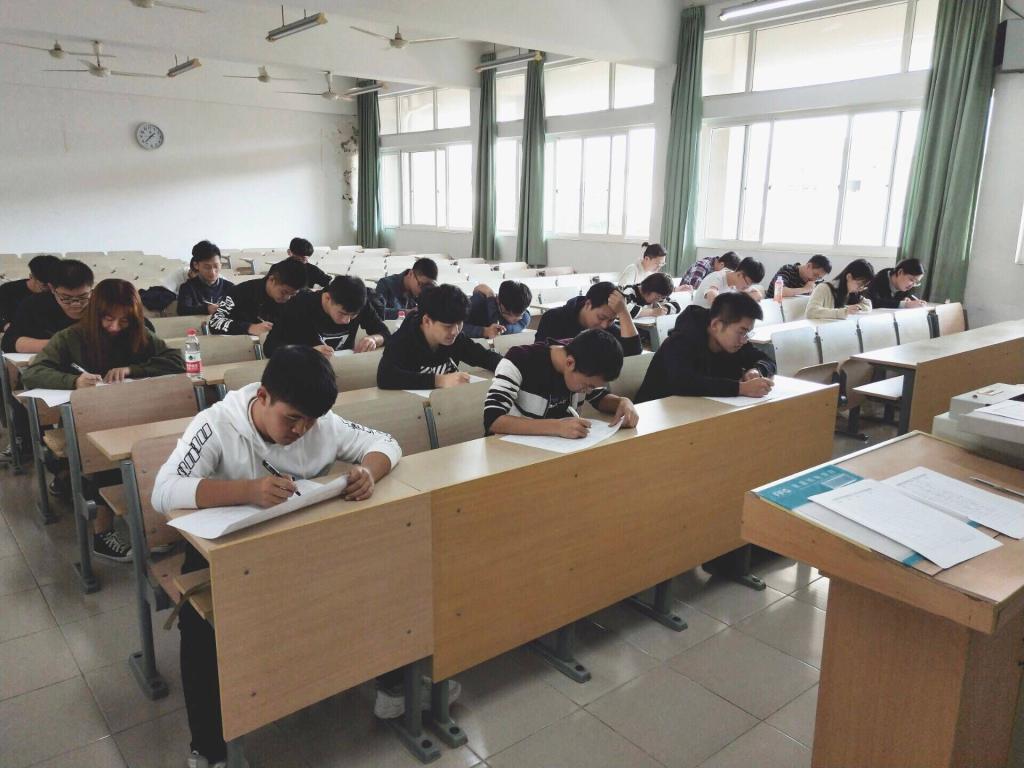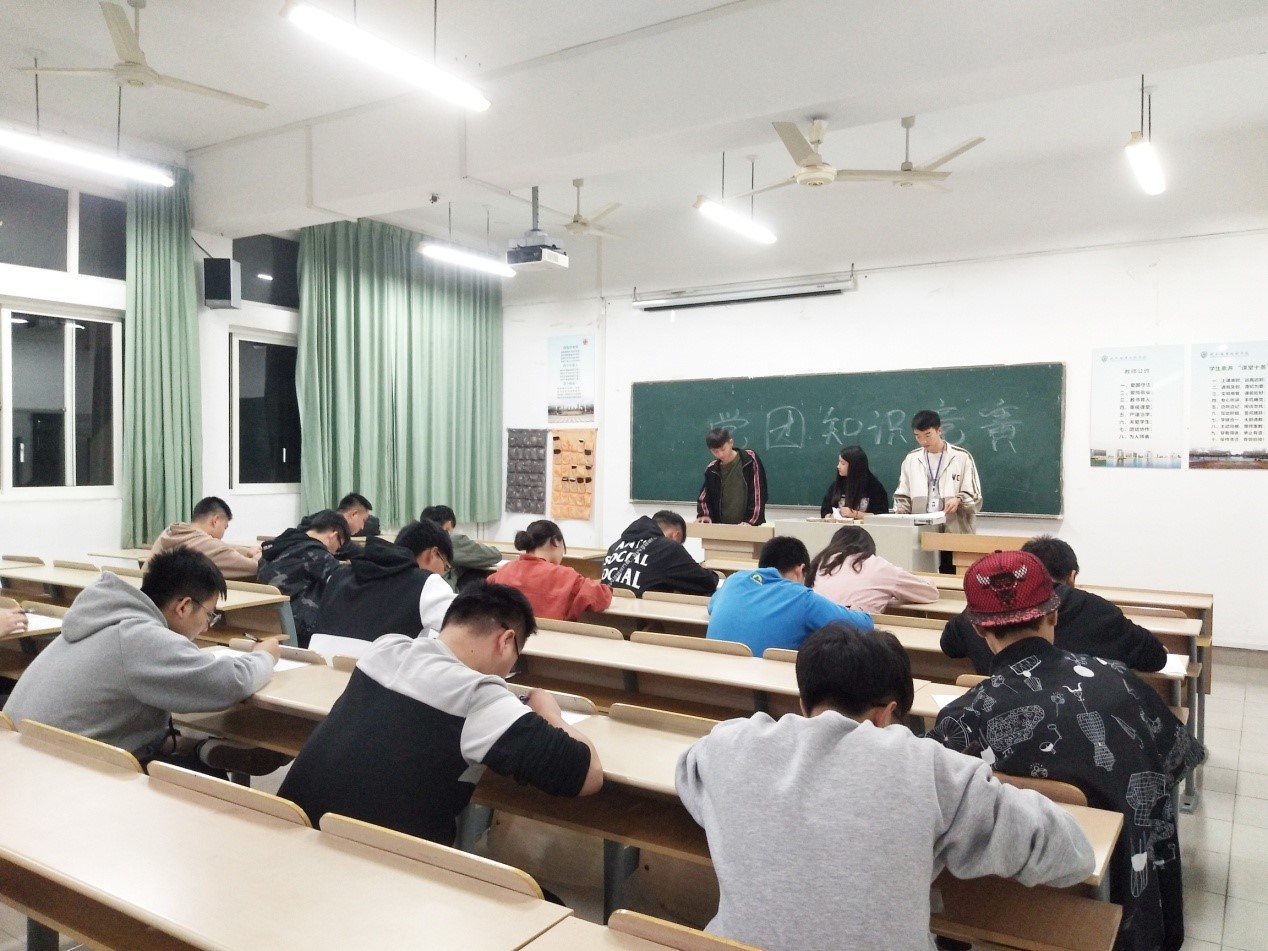 竞赛采取闭卷模式,考试时间为一小时。为错开上课时间,分下午场与傍晚场进行。赛场中,所有参赛的同学奋笔疾书,认真答题,丝毫没有走过场的意思。开考不到三十分钟就有团干部陆续上交答卷,看着他们嘴角旁挂着的微笑,就知道他们并没有被题目所难倒,一定是做了充分的准备,才能在如此短的时间里答完所有题目。