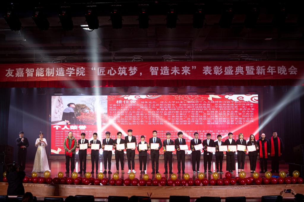 今夜,我们齐聚一堂,共享这一年里友嘉智能制造学院走过的浓浓回忆;今夜,我们无比自豪,见证这一路上友嘉智能制造学院留下的光辉荣耀。我们要为自己的努力骄傲,期待,在来年的冬天,有更多的同学可以站在这个舞台上,共同传承匠心,书写美好青春华章。
