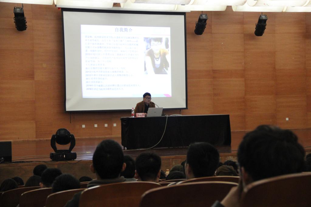 为进一步弘扬工匠精神,丰富校园文化内涵,让学生明确学习生活的定位,学会如何结合专业和自身特长规划未来,友嘉机电学院于12月5日晚在图书馆报告厅举行了“机电未来”系列之工匠精神与大学生职业生涯规划讲座。讲座由2011届数控专业优秀毕业生胡金焕担任主讲。数控专业负责人吴晓苏教授、辅导员及700余名友嘉学生到场聆听学习。讲座由学工办钟建平老师主持。