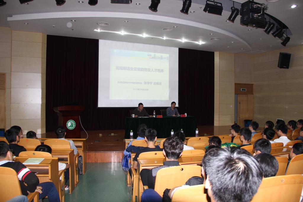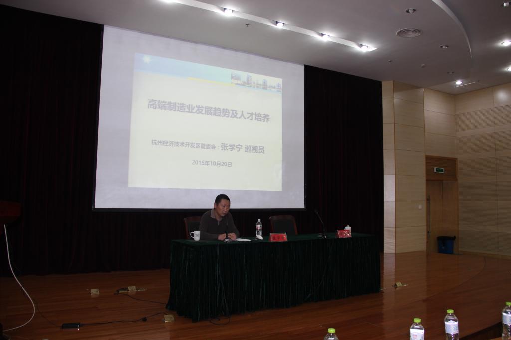 10月20日下午15:00,友嘉机电学院邀请了杭州经济技术开发区管委会巡视员张学宁在行政楼二楼报告厅作了一场主题为“高端制造业发展趋势及人才培养”的讲座。友嘉机电学院470余名大一新生到场聆听,讲座由友嘉机电学院党总支书记主持。