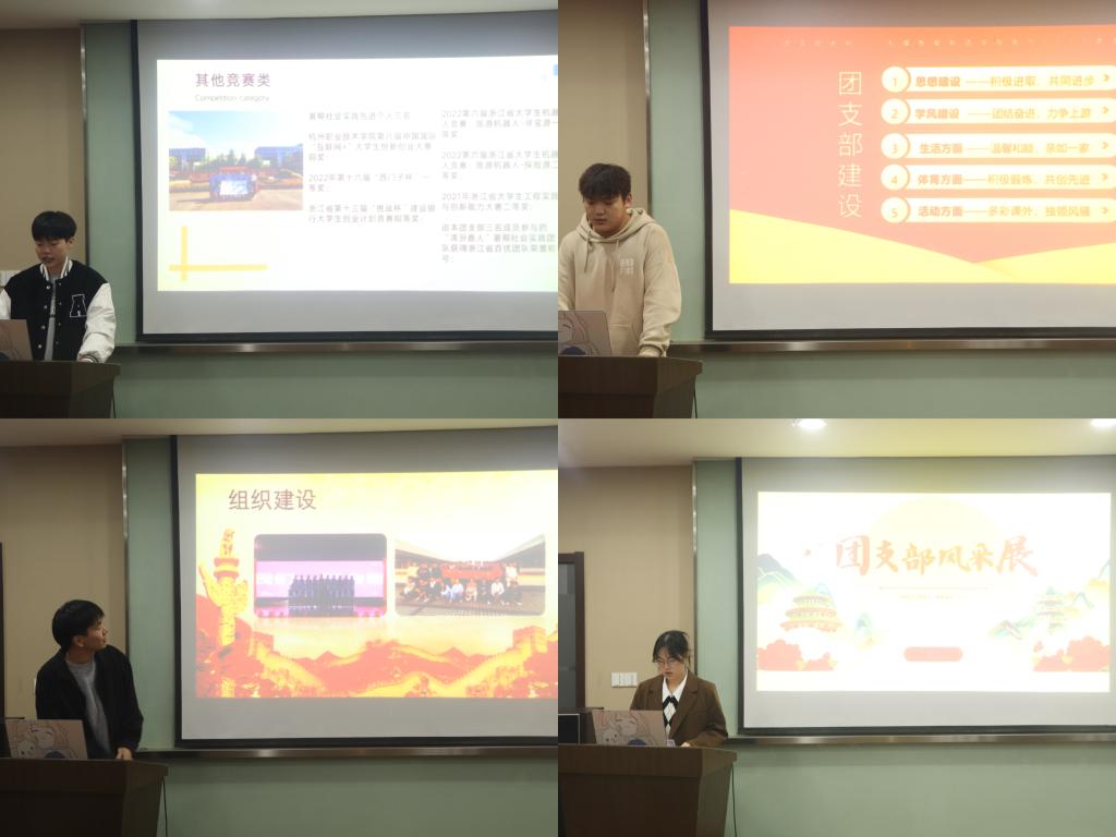 通过初轮遴选共10个团支部进入本次评选,各班团支书通过PPT讲解、创意风趣的演讲展示了团支部在思想引领、学风建设、创新创业、志愿服务、实践教育等方面的特色亮点,体现了整个支部成员的整体凝聚力和积极性,同时也展现出团支部书记在带领团支部开展各项活动的组织能力、协调能力等方面的风采风貌。在评比中各支部围绕“青春笃行跟党走,踔厉奋发新征程”的主题向我们展示了各团支部的风采,富有朝气和时代特色的班徽形象设计以及长期推广开展的特色活动,富有朝气地介绍团支部成员个人所获荣誉和支部集体荣誉。最终工设2112、智控2111、电气2111、模具2111、工设2011团支部被授予2022年度友嘉智能制造学院活力团支部称号。