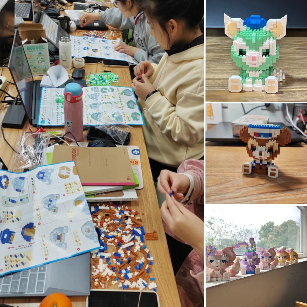小小积木,大大世界。活动开始,智造设计协会会长刘天阳以及副会李嘉雨结合图片以及实物给同学们进行了讲解,展示了颗粒积木材料并进行了拼装技巧教学。积木可以提高空间感和想象力,激发创造能力和审美能力。在讲解完后,同学们便跃跃欲试,从看图到分类,再到积木一块一块搭建起来,大家一边搭一边交流心得,做出的成品各有特色,活动现场热闹非凡!