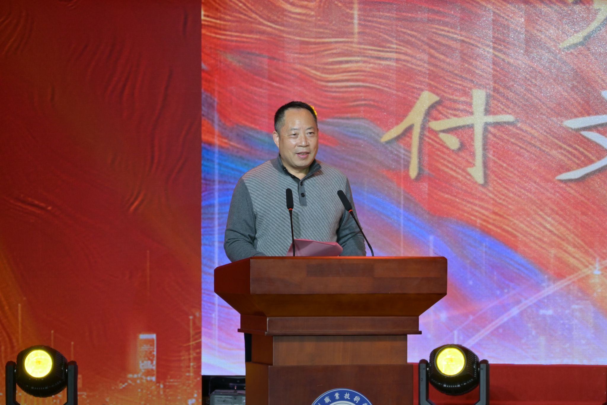 守正创新,奋楫笃行;培优提质,匠苗迭出。党总支书记付文军以《“新”生万象“质”绘匠心》为题致辞,向获得表彰的同学们致以最热烈的祝贺,向全体师生表示衷心的感谢和崇高的敬意。在过去的一年里,友嘉智能制造学院取得多项显著成绩,师生在各类技能竞赛中屡获佳绩。随后,付文军向全体友嘉学子提出了三点期望:一是创新驱动,抓住与时俱进的“新”,要注重创新、敢于突破;二是精益求精,锤炼工匠精神的“质”,要铭记工匠精神内涵;三是只争朝夕,紧抓时代脉搏的“速”,要不断提升自我“含金量”。