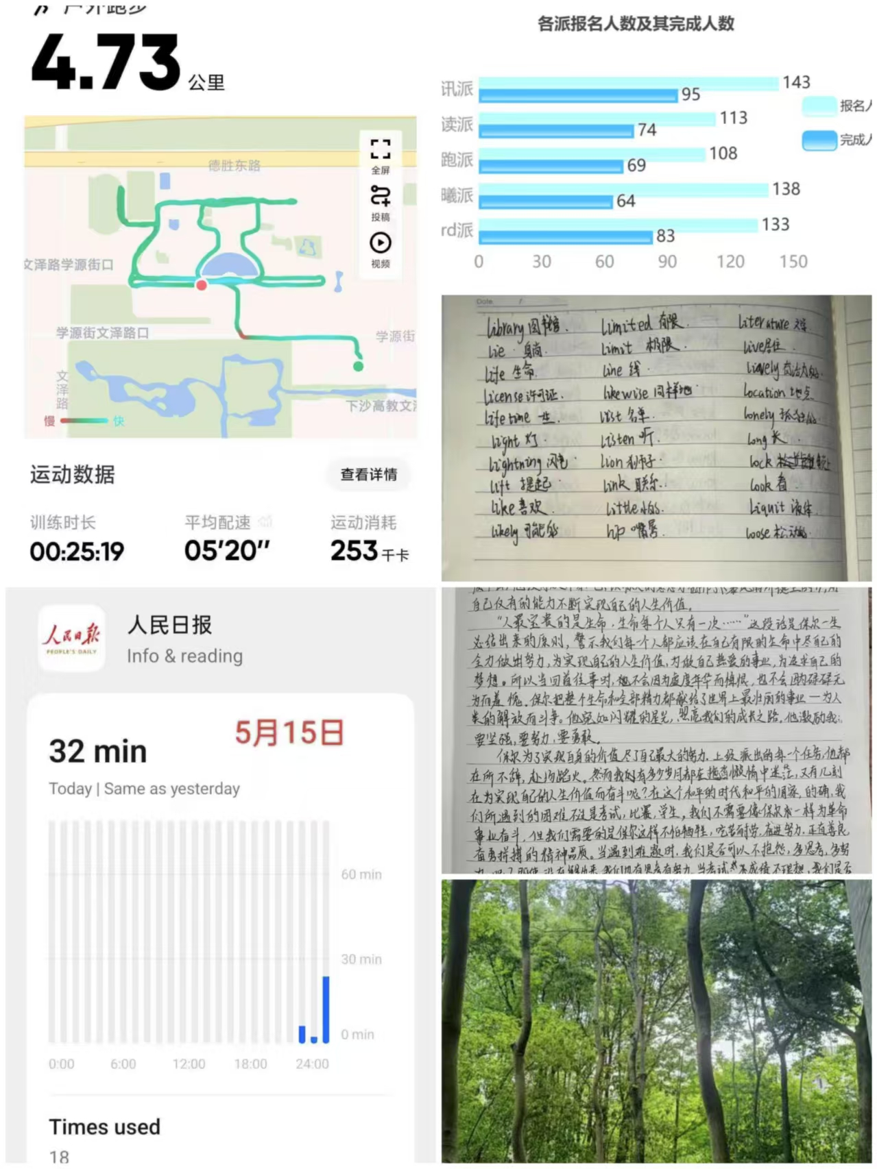 本次活动精心策划了五大派别,涵盖了语言学习、体育锻炼、早起习惯养成、阅读推广以及信息咨询等多个领域。各派别均吸引了大量学生的积极参与,单词派报名人数达到133人,迎曦派138人,乐跑派108人,悦读派113人,而览讯派更是吸引了143位同学的参与。