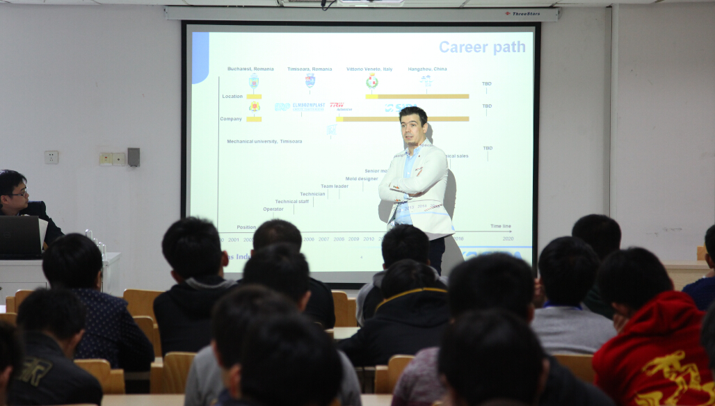 11月12日下午,由友嘉机电学院组织并邀请的罗马尼亚工程设计师——ALIN主讲的《PET》讲座在学生活动中心二楼活动厅举行。友嘉机电学院相关专业师生听取了讲座。