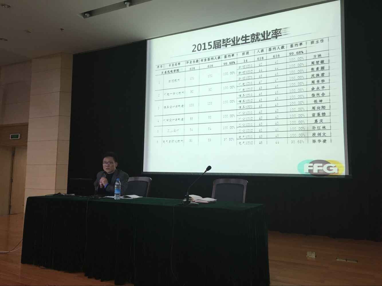 11月4日晚,杭州职业学院友嘉机电学院辅导员孙红林,在行政楼二楼的报告厅为同学们带来了一场题为“2016届毕业生职业指导及政策解读”的就业指导讲座。