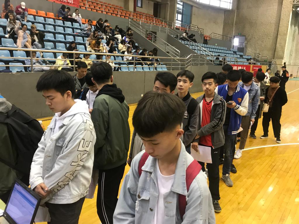 4月13日,我校模具设计与制造专业2018年提前招生资格确认工作在体育馆二楼进行,专业老师们带领学生志愿者根据确认流程有条不紊地确认考生资格并发放准考证。