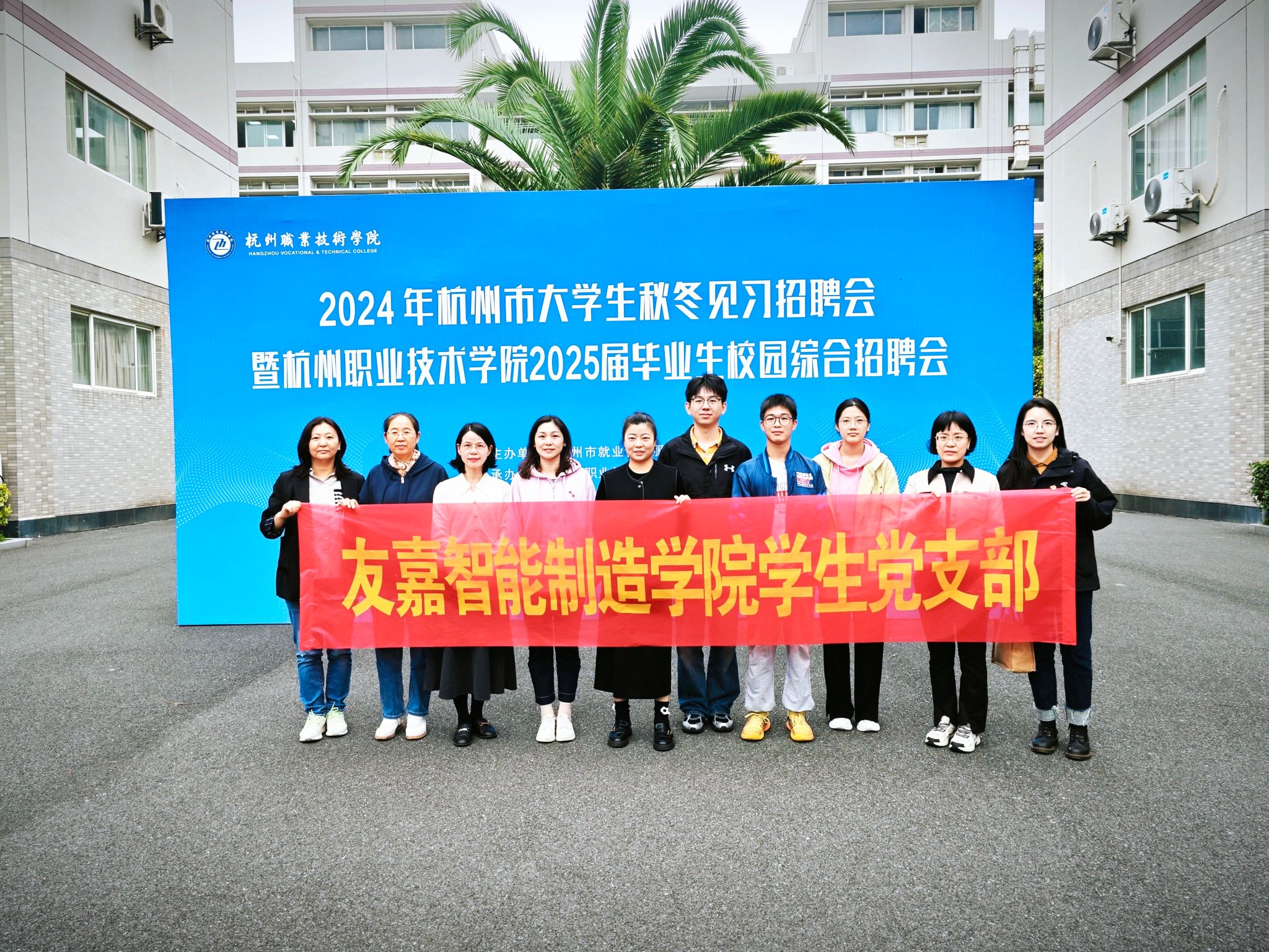 10月30日,友嘉智能制造学院学生党支部在本校2025届毕业生校园综合招聘会中,开展了以“党建引领促就业,朋辈交流共成长”为主题的党日活动。在此次招聘会上,学院党支部特别设立了学生党支部就业赋能区,党员老师们为学生提供简历修改、面试技巧、职业规划等专业咨询服务。此外,还分发了宣传手册,解答了学生对就业政策的疑惑,帮助他们更好地理解政策、行业趋势、求职攻略以及权益保护等相关内容。